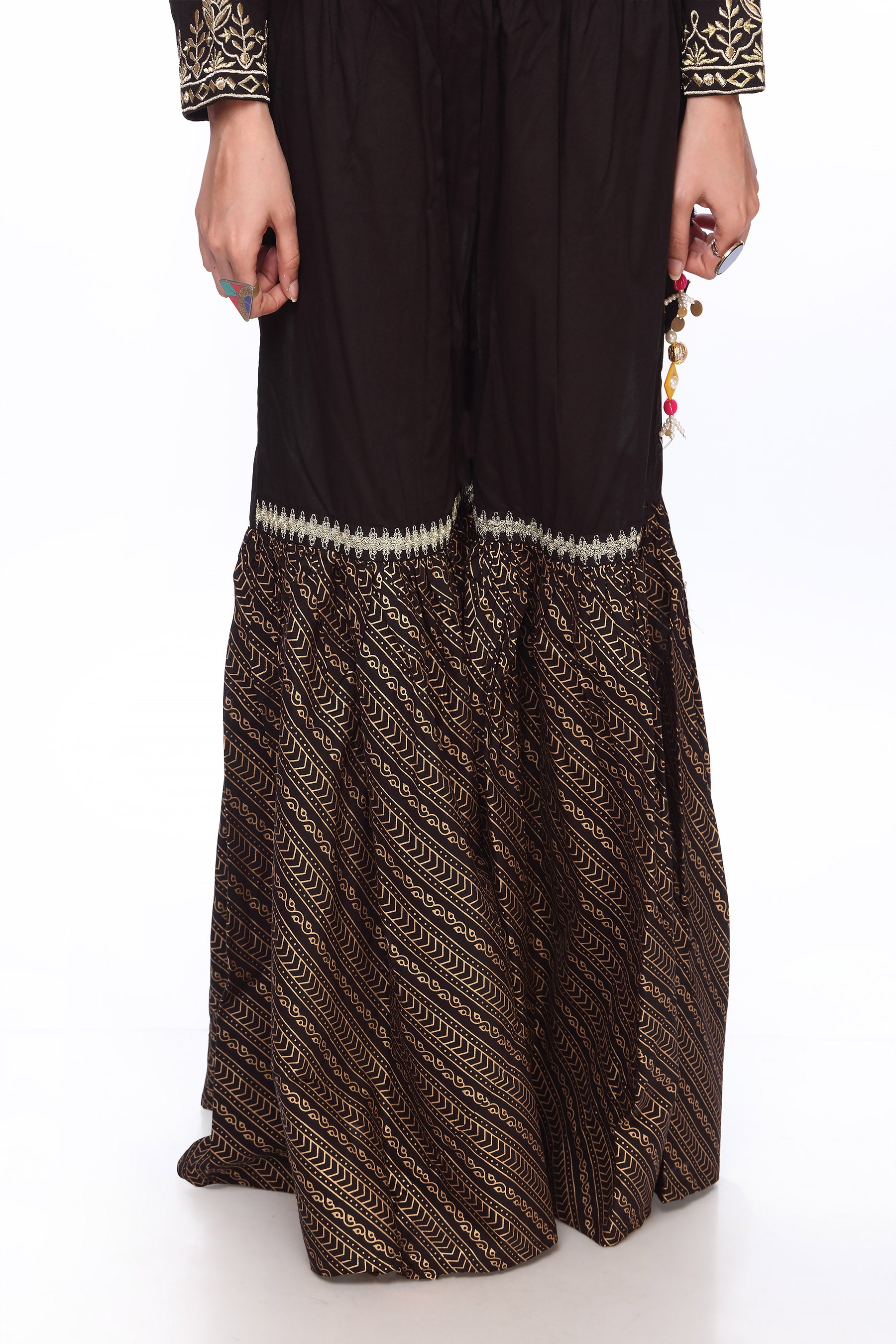 Experience elegance with the Gharara in Black, crafted from premium Printed Cambric. This 1 Piece is perfectly designed for any occasion.