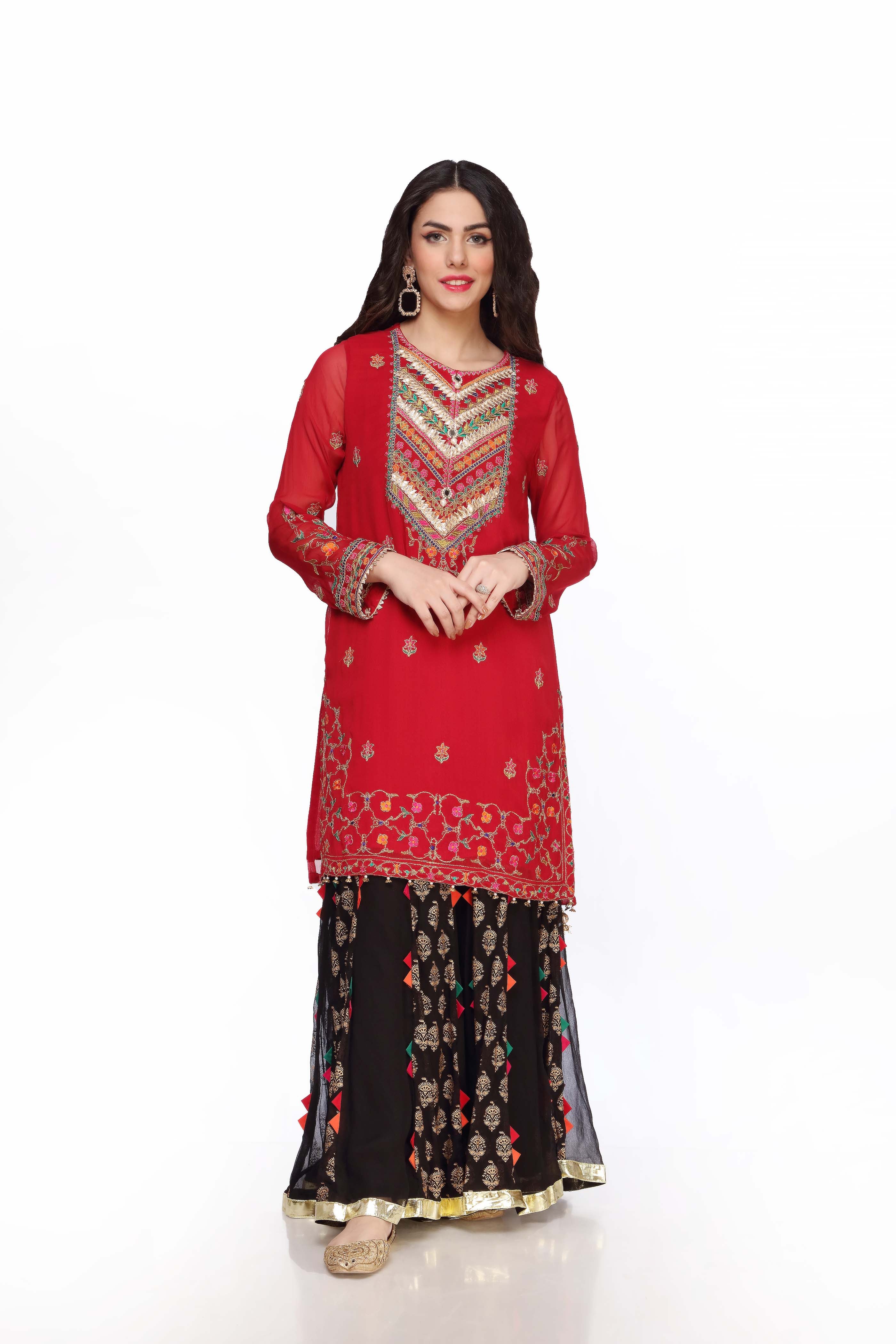 Experience elegance with the Top in Red, crafted from premium Pak Chiffon. This 1 Piece is perfectly designed for any occasion.